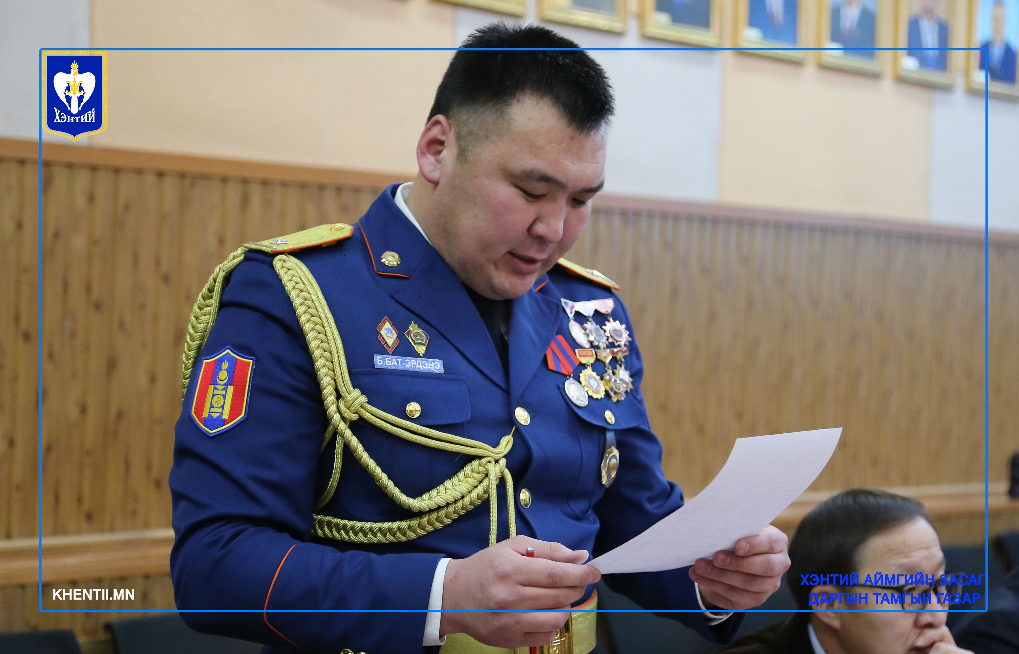 ОБЕГ-ЫН ДАРГА, ХОШУУЧ ГЕНЕРАЛ Г.АРИУНБУЯН ХЭНТИЙ АЙМГИЙН ОНЦГОЙ КОМИССЫГ ХУРАЛДУУЛЛАА