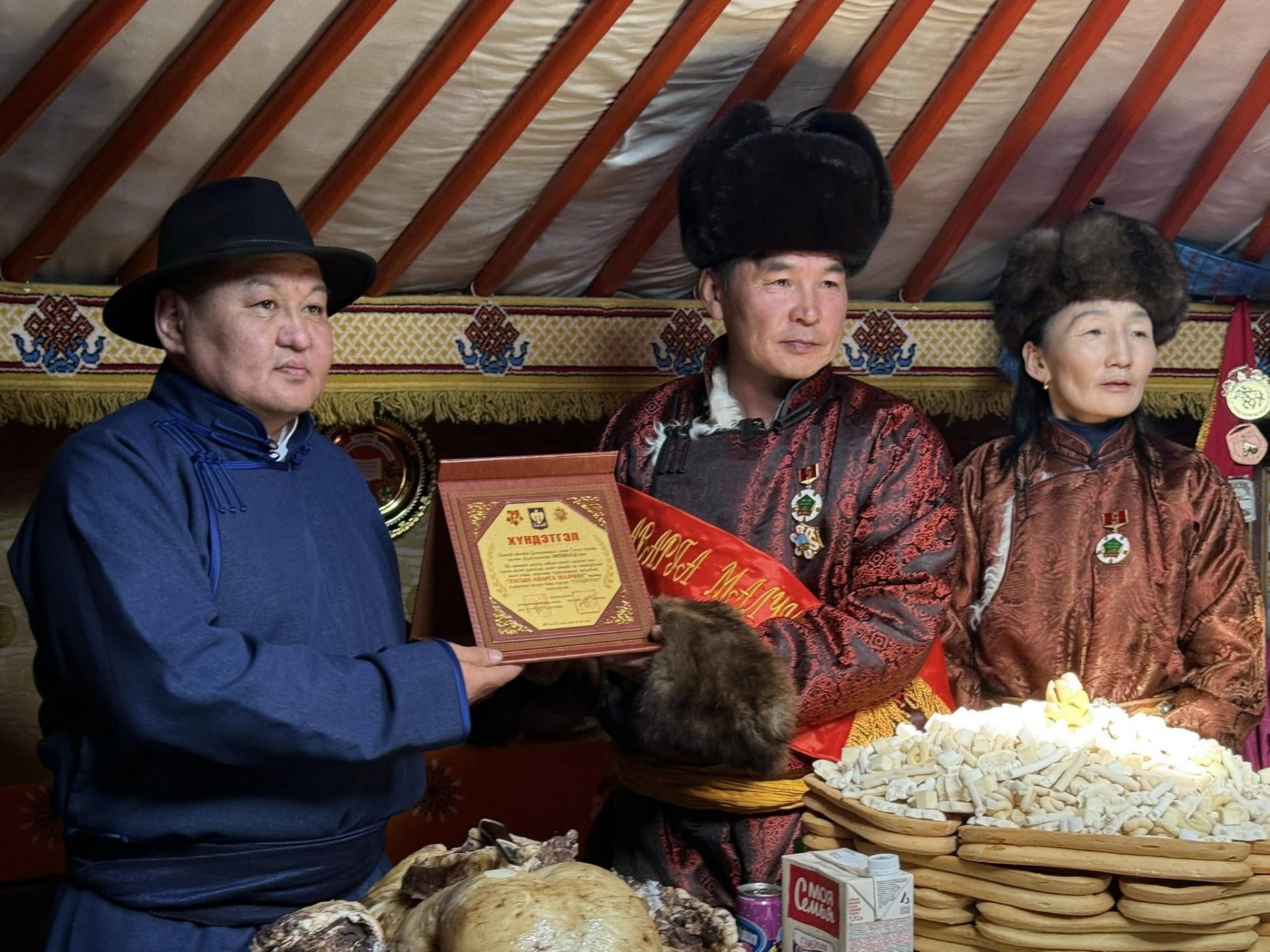 Улсын аварга малчны шагналыг УИХ-ын гишүүн М. Ганхүлэг, аймгийн ИТХ-ын дарга Б. Цогт-Орших болон сумын удирдлагууд гардууллаа.