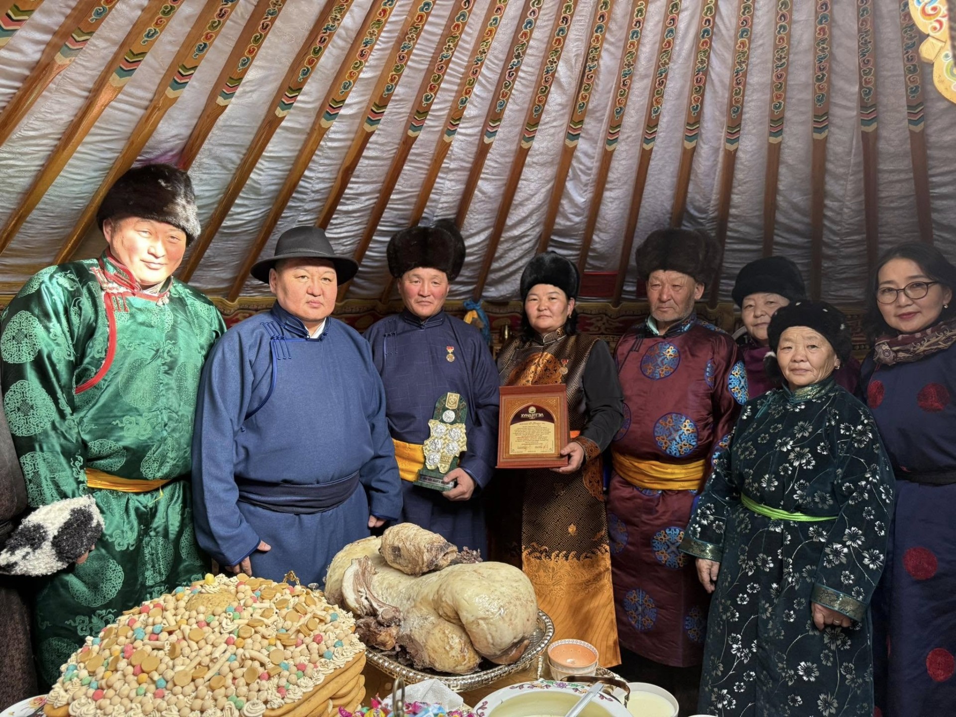 Аймгийн аварга малчин өрхийн шагналыг ИТХ-ын дарга Б.Цогт-Орших, Сумын удирдлагууд малчдын хотонд нь гардуулж байна.