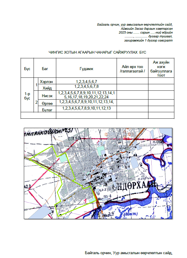 Монгол Улсын Агаарын тухай хуулийн 15 дугаар зүйлийн 15.1, 15.4 дэх хэсэгт заасны дагуу Чингис хотын “Агаарын чанарыг сайжруулах бүс” тогтоож, бүсэд мөрдөх журмыг Байгаль орчин, уур амьсгалын өөрчлөлтийн сайд, аймгийн Засаг даргын хамтарсан тушаал/захирамжаар батлуулах тул Захиргааны ерөнхий хуулийн 62 дугаар зүйлийн 62.1-т заасны дагуу иргэд, олон нийтийн саналыг авч байна.